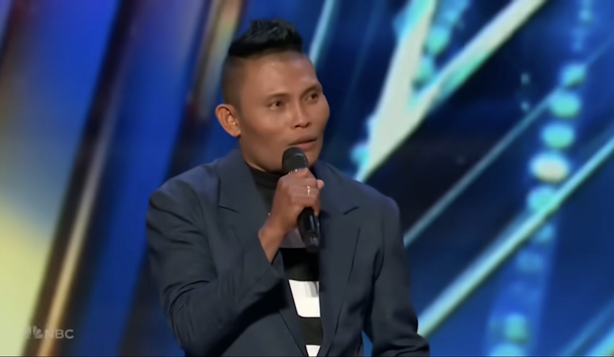 Roland Abante’s audition on America’s Got Talent felt less like a performance and more like a life unfolding in front of thousands of strangers. He began by telling the audience about his everyday routine—waking before dawn to fish, spending long hours on the water, then switching gears in the afternoon to deliver goods by motorbike to make ends meet. Those simple, honest details grounded him in a reality many of the viewers could picture: a man whose talent had been tucked into a life of work and responsibility. He admitted that standing on the AGT stage was a “big dream,” and you could see how much the moment meant; his hands trembled and his voice hovered between excitement and nerves. The display of human vulnerability was so palpable that Heidi Klum walked onto the stage to give him a hug, a small but meaningful gesture meant to steady him before he sang.